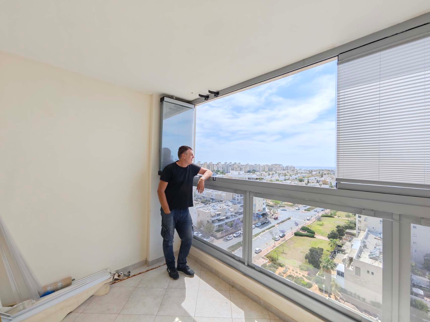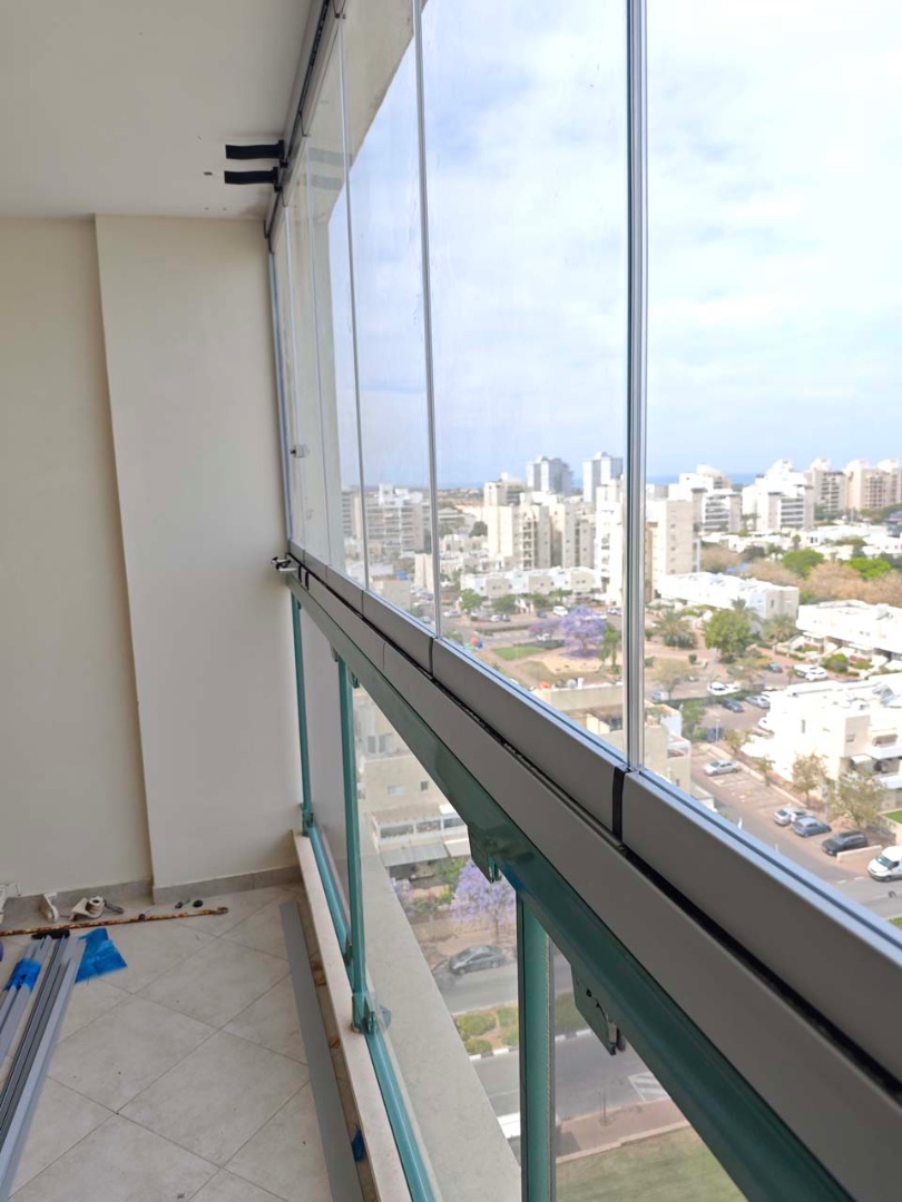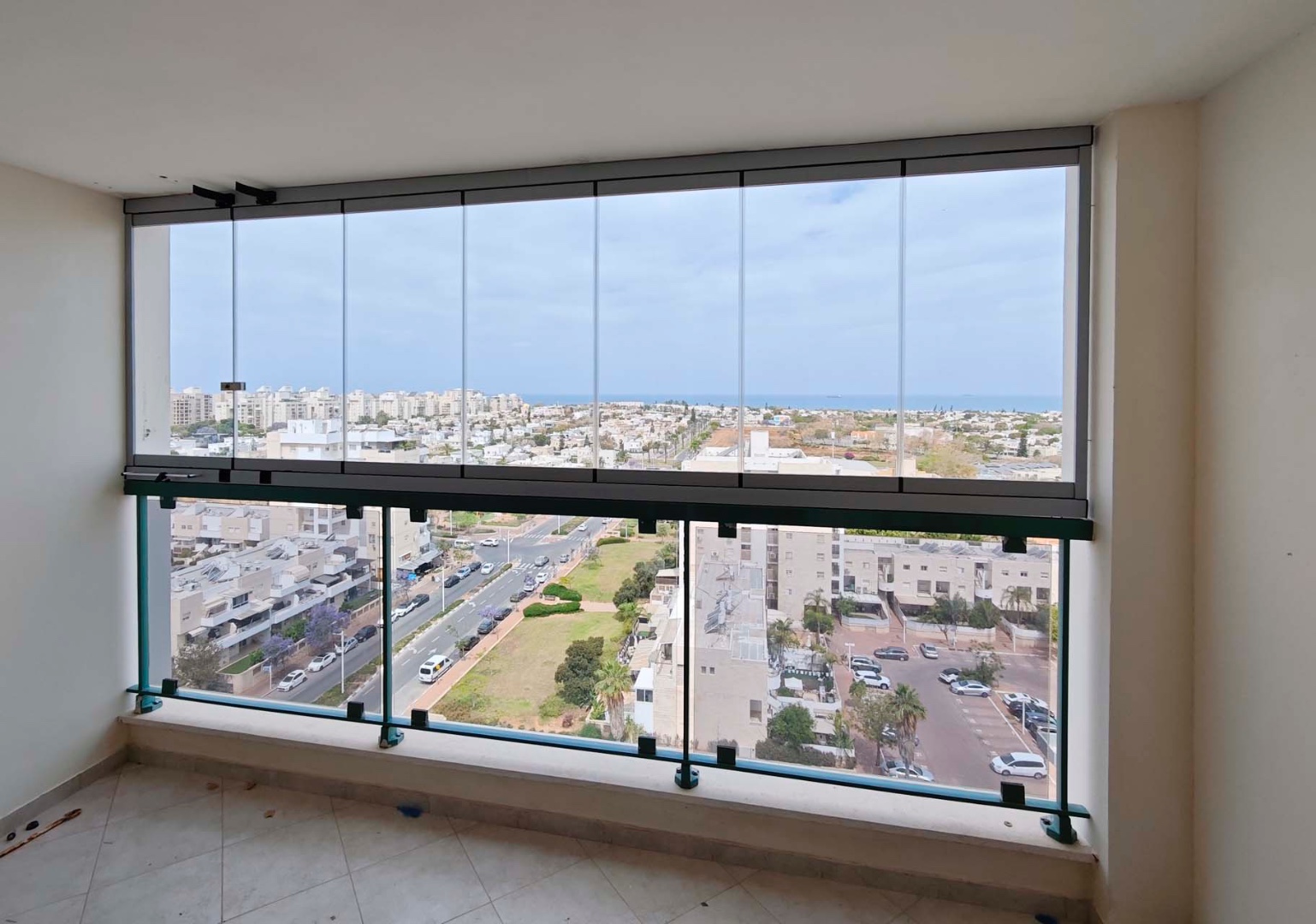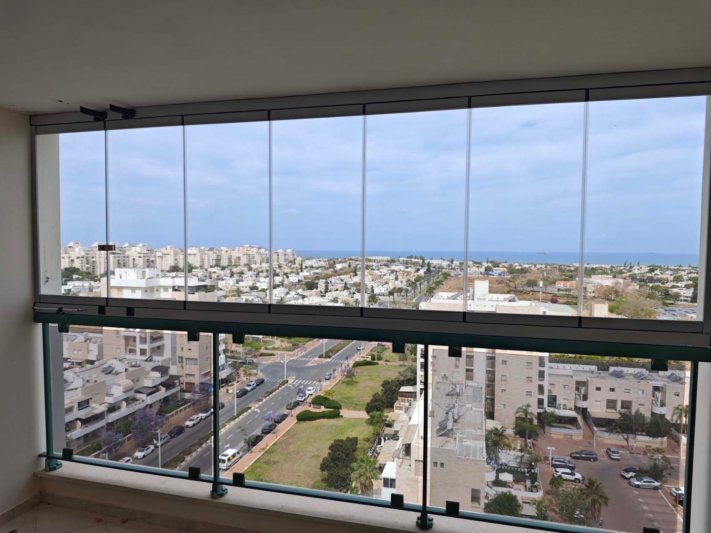זיגוג מרפסת בקומה ה־22 בנתניה עם נוף לים