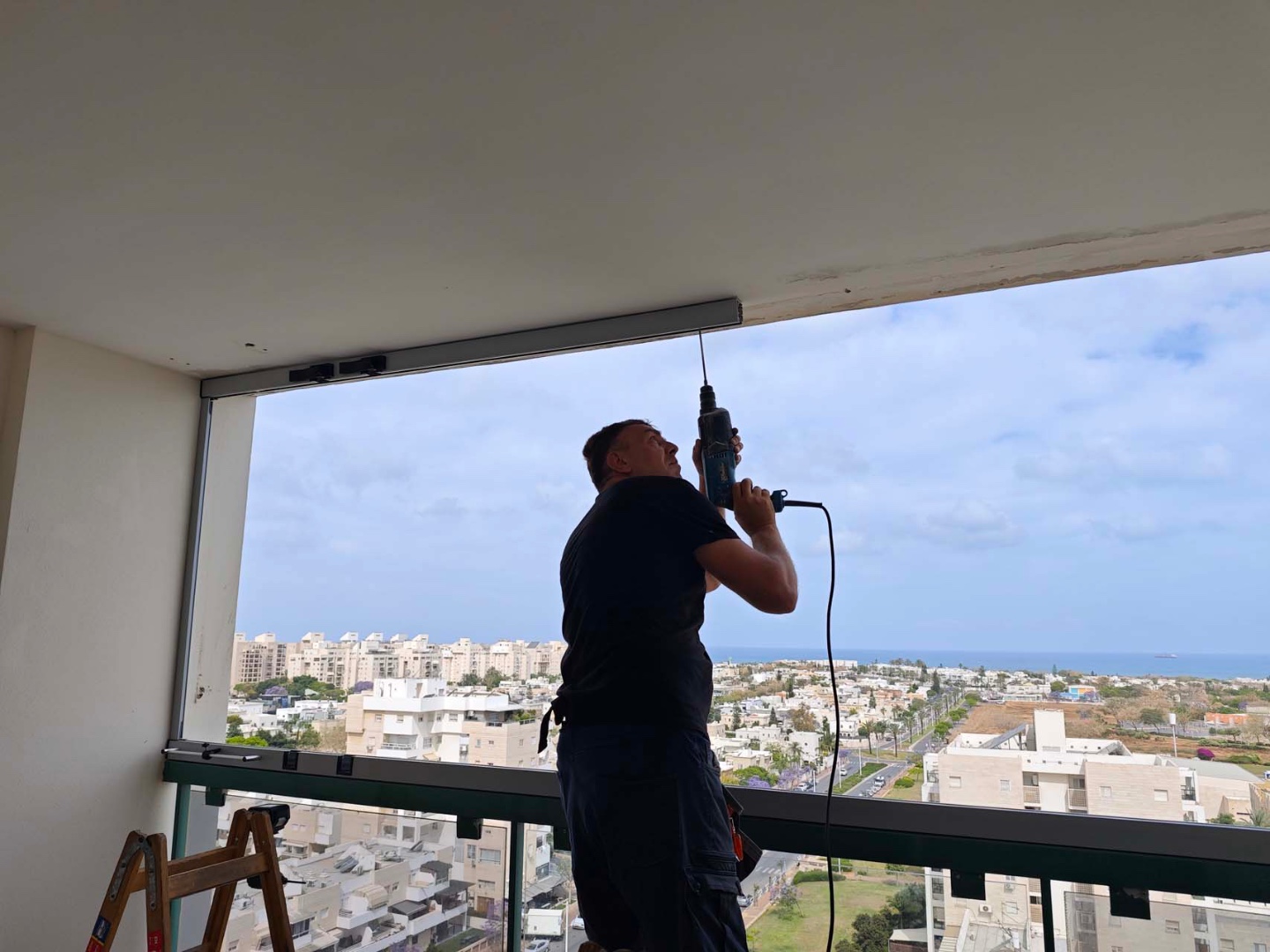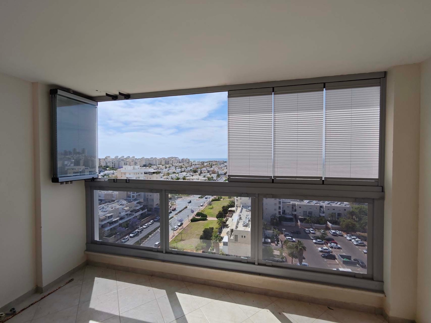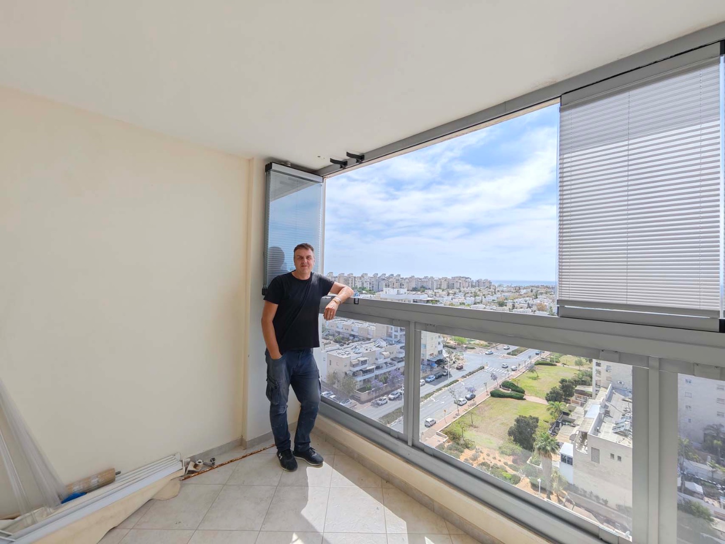זיגוג מרפסת בקומה ה־22 בנתניה עם נוף לים