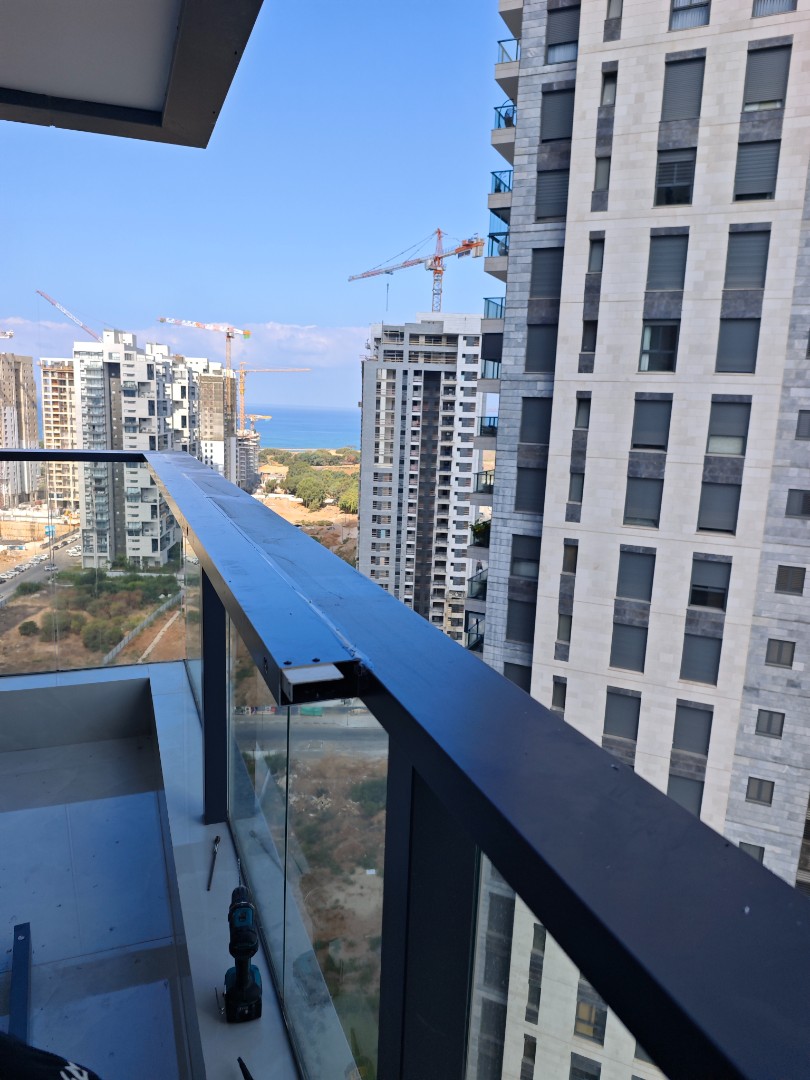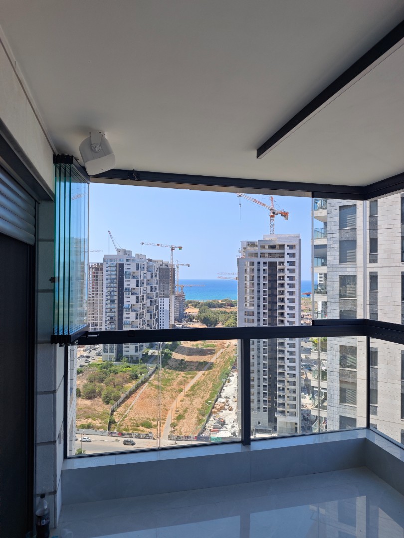 היום אנו מזגגים מרפסת בבת ים. הדירה נמצאת בקומה גבוהה סמוך לים — אזור שבו נושבות רוחות חזקות במיוחד.